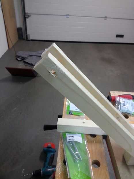 De ruimte boven het streepje op onderdeel B es vrij nog. TEKEN en Antas de dat en het midden een rondje. Hierdoor boor je een gat waarin de moer gaat. Hou de piezas C en D ernaast en teken ook daar en het midden een rondje en grosero este la puerta. ALS het goed es de moer puerta alle piezas. Plaats een sluitring tussen de houtjes twee en tussen de moer en de houtjes. Het Sluit met een vleugelmoer. Herhaal het proces voor C, D en E en voor E, F en G.