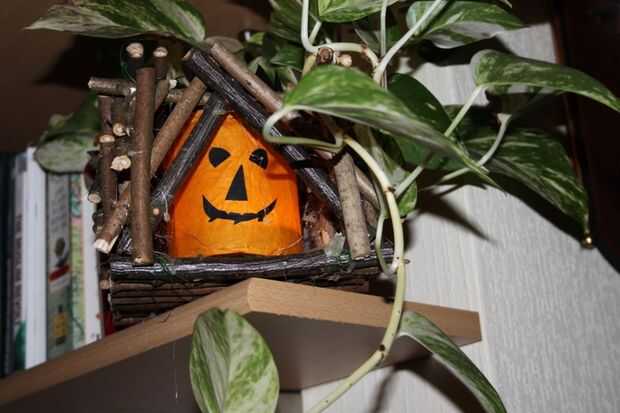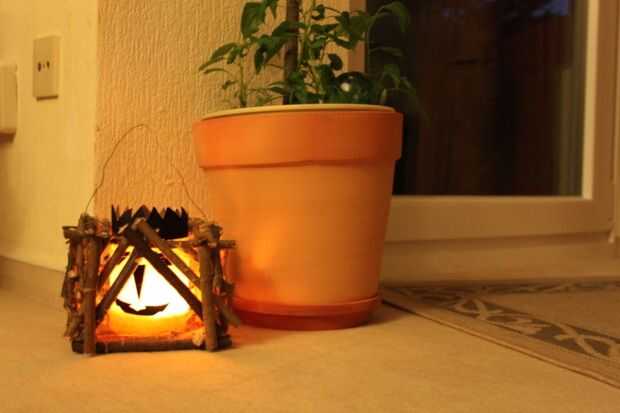 Ahora una vela encendida dentro, esta hermosa lámpara toma turno para sentarse en diferentes lugares en mi sala de estar. Siento el ambiente de Halloween y me mantiene caliente y luces de la sala... Estoy en proceso de hacer un par de tamaños diferentes en más así. Que no necesito usar los calentadores y luces. Esto hará que sea resplandor en mis habitaciones.