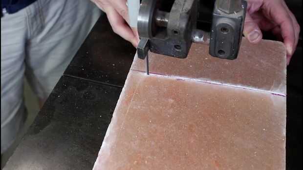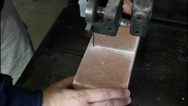 Luego cortar 2 cuadrados de 4 pulgadas en mi sierra. Tomar esta agradable y lento. La sal de las fracturas más corta, y usted está básicamente sólo guiar esa rotura con su sierra. El polvo sal es intensa. Proteger los pulmones. Use una mascarilla.