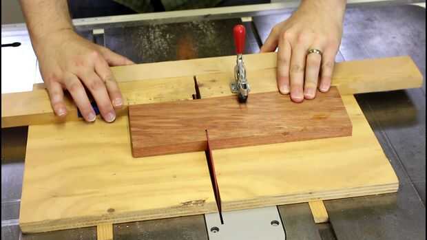 Arrancó un tablero hasta 4" ancho en mi mesa de sierra y luego usa mi cruz corte trineo para hacer dos piezas de 4" para que coincida con los bloques de sal.