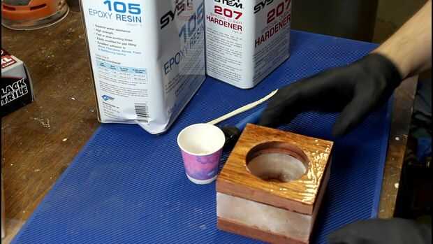 El proceso podría ser más simple. Pegue todos los bloques de cuatro junto con resina de epoxy de parte 2. Espere 24 horas para el tiempo de curación total.