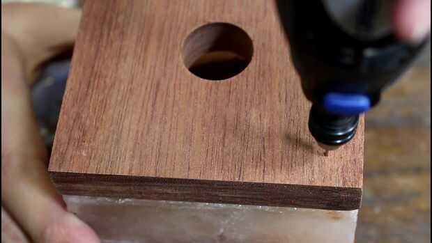 Entonces agregado unos pies de goma debajo para actuar como separadores. Esto me permitiría agregar una luz con hacer un hueco para el cable.