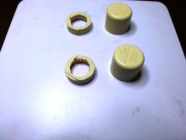 Tapas de PVC y corte de arco con hoja de tubo se corta un pedazo de 3 cm en tubo de PVC, y se emparejan los bordes del tubo con el papel de lija. Además, deben ser tableros corte dos anillos aproximadamente medio centímetro. Además, hay que saltar los bordes de los extremos de la tubería de PVC con el papel de lija.
