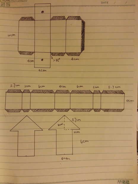 Decidir qué tamaño desea que esta lámpara sea. Hice la base lámpara y lámpara de flecha que ambos 4 x 4 cm x 10 cm. tenga cuidado con calcular el tamaño de la flecha. Después de dibujar la forma básica, también tienes que dibujar los bordes de la cola.