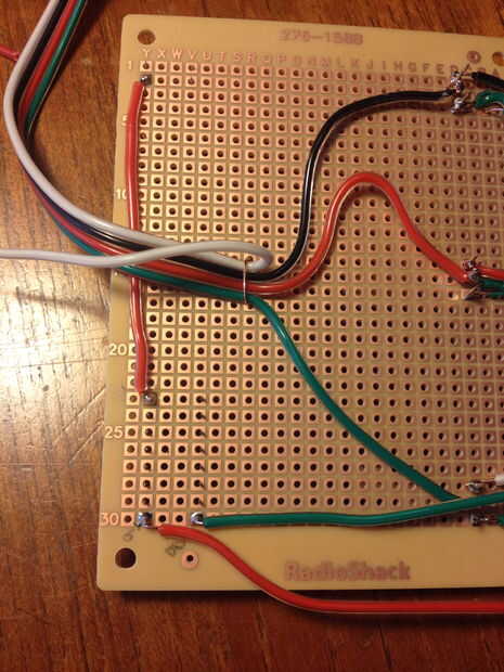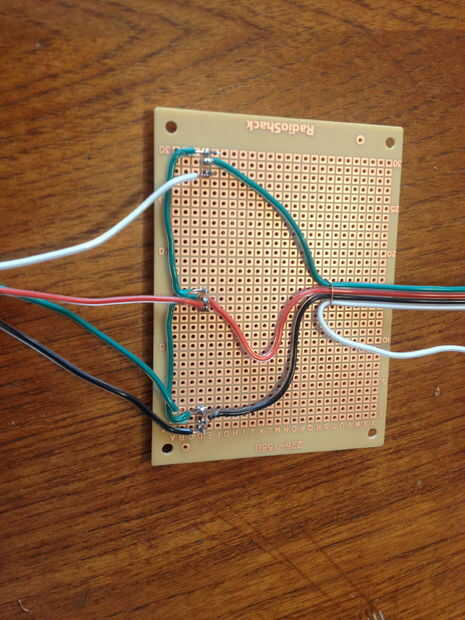 Finalmente, correa los cables hacia abajo con alambre de cobre pelado para que los cables no Haz arrancados accidentalmente. Esto puede ser girando el alambre con los alicates cortar y aplanar contra la Junta.