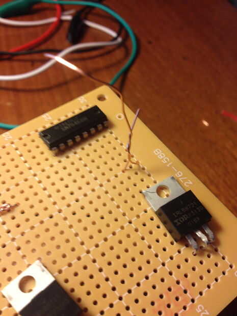Soldadura de hilo blanco (positivo) al cable de voltaje de tira del LED a una pata del relay. El cable negro debe soldarse a la otra pata del relay para el Vin en el arduino. Suelde el cable hacia fuera (alambre negro) para el sensor de PIR al pin 1 en el chip de IC. Tuve que añadir la viruta del IC SN75468N 16 pin porque el sensor de PIR no tiene suficiente energía para conducir el Relais.