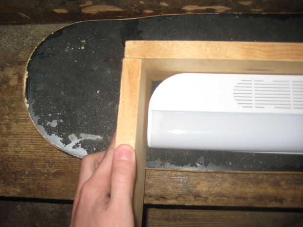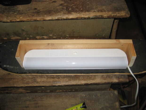 Con la madera restante colocar al ras de los extremos de la madera. Puesto que la lámpara mide a 3 1/4" queremos que el marco de madera a ser ligeramente más cortas para no bloquear cualquier luz.