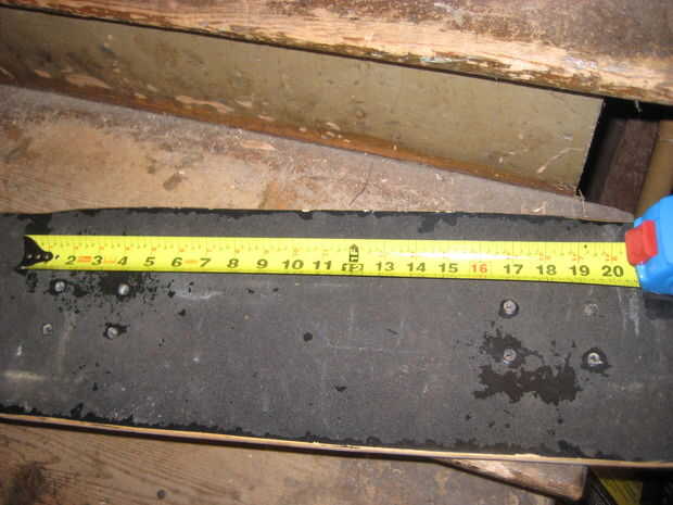 A continuación medí la distancia entre agujeros más distanciada del carro para ver cuánto necesitaba el cuerpo de la montura. 20" parecía hacer el truco, lo suficiente para cubrir toda la fila superior de los orificios mientras permanece al ras de la cubierta.