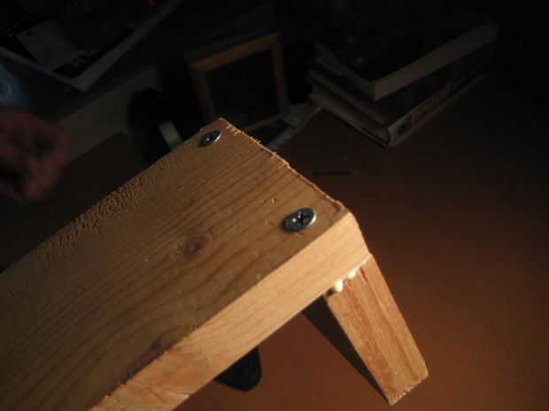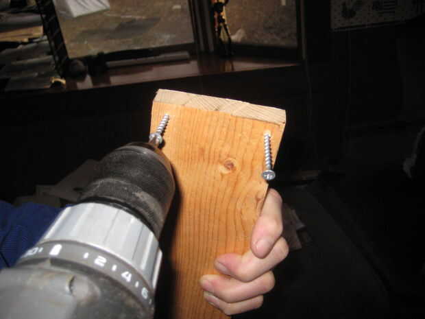 Comience a taladrar sus tornillos para madera #6 en el cuerpo principal de la estructura, justo lo suficiente para que sobresalgan las puntas del otro lado. Haciendo esto podrás alinear los orificios piloto más fácil.