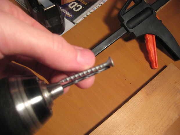 Encontrar una broca de madera ligeramente más pequeño que sus tornillos #6 para perforar agujeros pilotos.