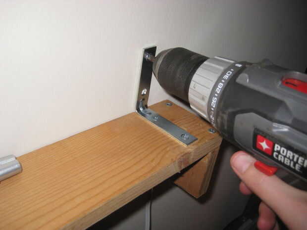 Asegúrese de que los soportes en L están al ras con la pared y agarrar sus tornillos y perforación otra vez.