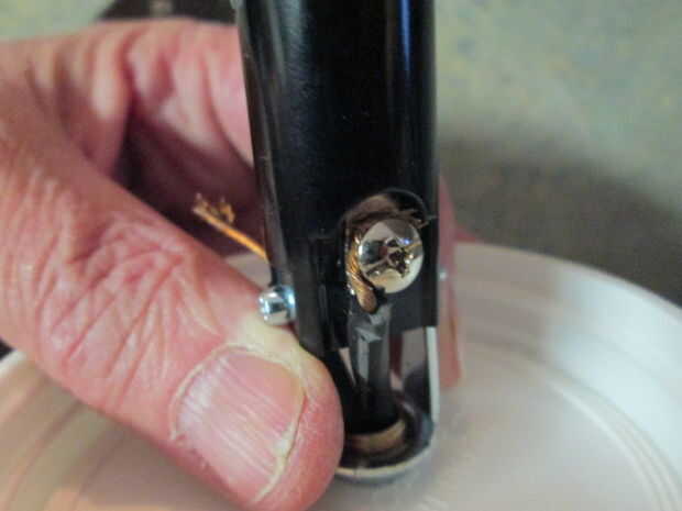Afloje uno de los tornillos y después de torcer los cables juntos, hacer un gancho de los alambres y gire alrededor de la base del tornillo, en la misma dirección que el tornillo cuando se aprieta (diestro tighty-zurdo loosey). Repita con el tornillo en el otro lado.