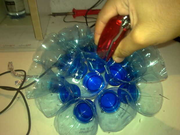 Lámpara de techo con botellas de agua (1 / 4 paso)
