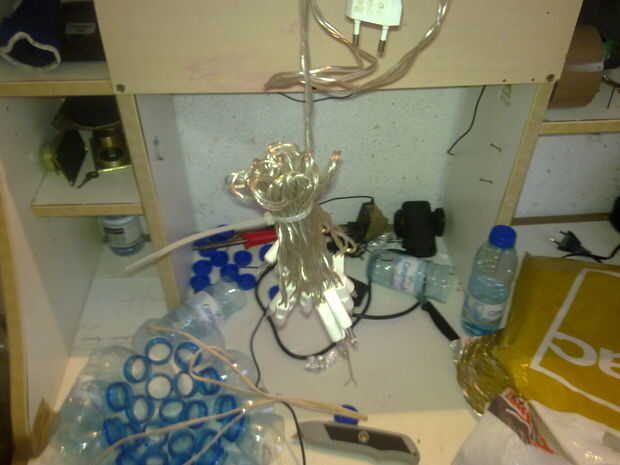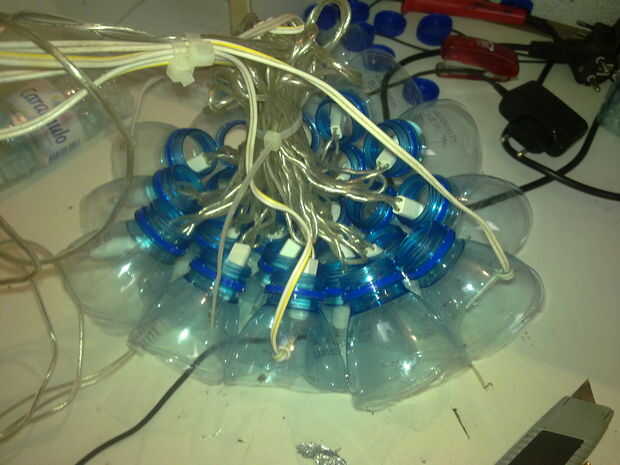 Lámpara de techo con botellas de agua (3 / 4 paso)