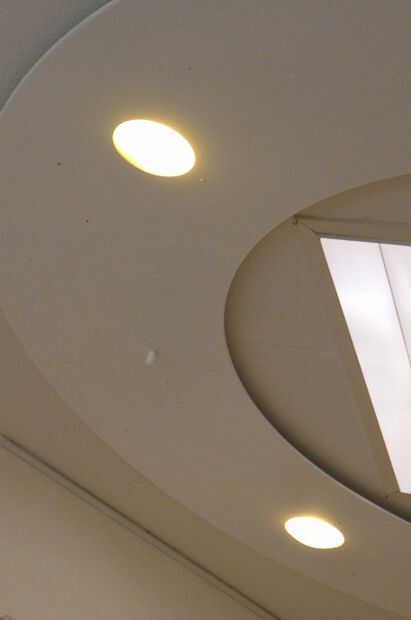 2. proveer iluminación indirecta iluminando el techo en dos bandas circulares: iluminación ambiental;