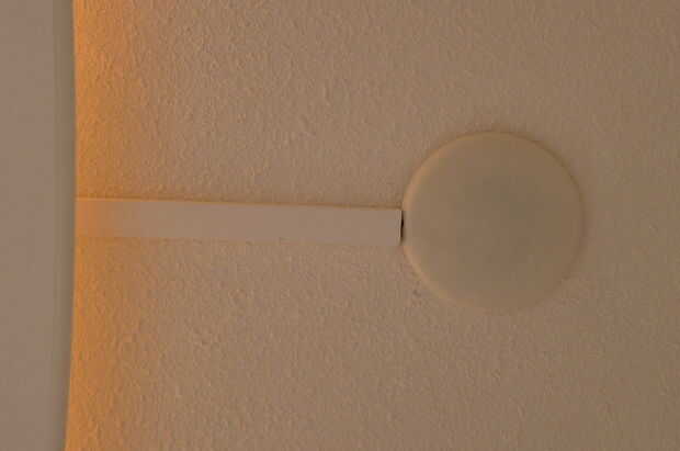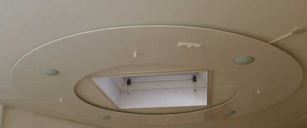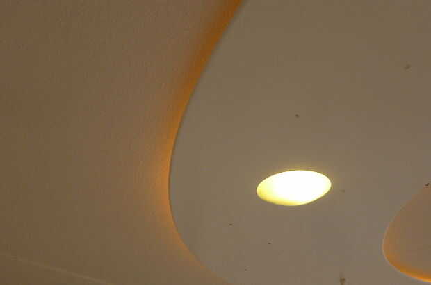Para fijar la lámpara en el techo se utilizaron cuatro pernos de cuña pesada que se fijaron en los centros de las vigas. Además, doce tornillos largos suspensión la lámpara. Asegúrese de que partes vitales de la construcción siguen siendo accesibles para el mantenimiento sin interrumpir la lámpara.