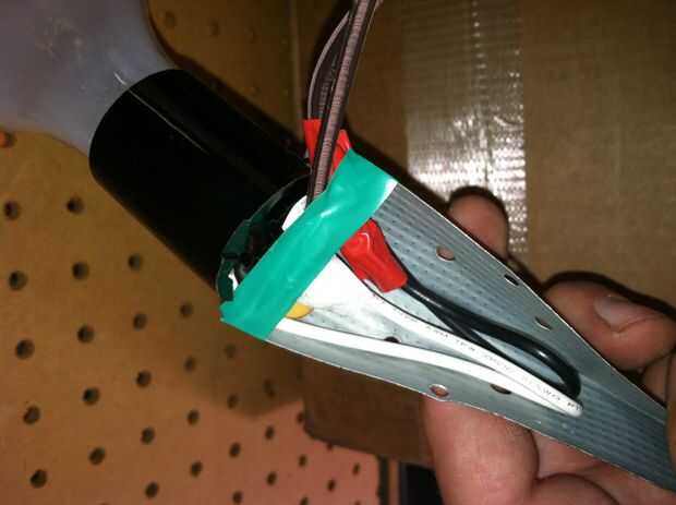 Desde aquí envuelve la pieza de aluminio que tenía alrededor de la luz toma cuidado de los cables y en rellenos como tal. Asegúrese de que antes que seguir este paso los cables son completamente envuelto y escondidos. Una vez que se establecen por el bien de aspecto envuelve el aluminio completamente en cinta verde para ocultar los cables y ocultar la aparición del aluminio. Le dan más de un aspecto natural básicamente.