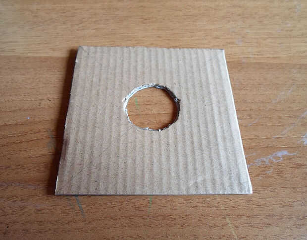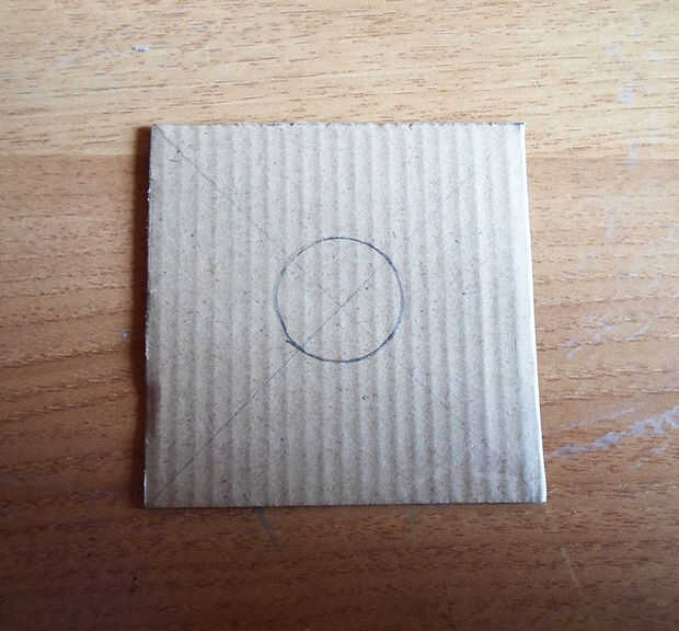 Trazar el contorno de su sostenedor de bulbo en el centro de la Plaza de cartón y recortarlo. Trazado las diagonales de la plaza como una ayuda para encontrar el centro.