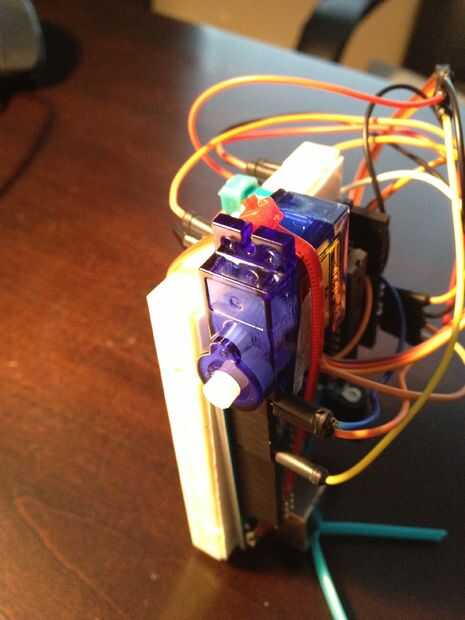encontré que mi mini servo ajuste perfectamente y apretado entre los pines de Arduino, así que zip ató allí. El eje del servo debe sobresalir más allá del borde de la Junta de pan para que el disco de máscara de sombra se borrará todo cómodamente.