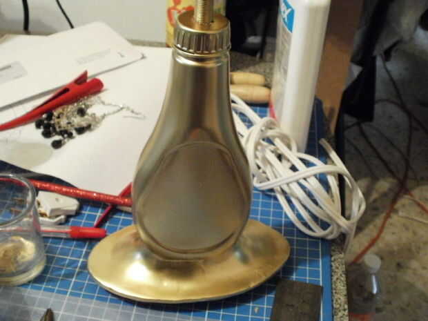 Corte el tubo roscado a una altura conveniente para la lámpara de la base. Atornillar el portalámparas en la parte superior del tubo roscado. Conexión según las instrucciones en la toma de los cables y el enchufe. O en el kit de la lámpara. (No pongo las instrucciones aquí para la instalación de cables eléctricos, porque en mi país no tenemos cables de color ni nada como eso. No quiero provocar terribles accidentes en otros países.)