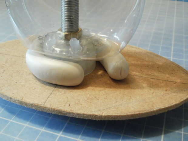 Originalmente pegue cuatro tapas de soda en la parte inferior de la base pero no obtuve el resultado estético que quería así que añadido a las piernas de la masilla de epoxy luego pero no son obligatorios.