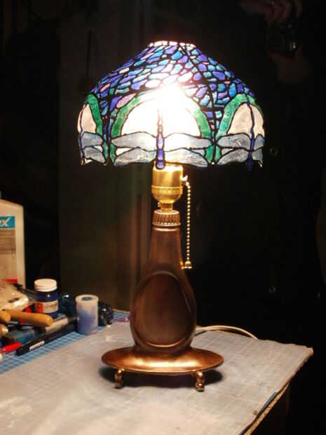 Poner el soporte de la cortina de lámpara de la bombilla y se acaba su Lámpara Tiffany falso.