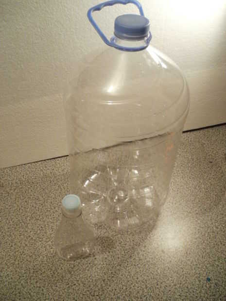 * 2 botellas de PET, uno de 10 litros, uno pequeño con una forma estilizada interesante.