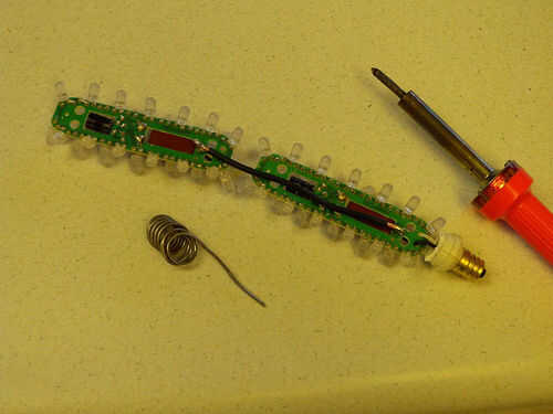 Si usted nota un cambio en los cables es porque de alguna manera he matado a una de las luces. Creo que sostenía el soldador sobre un componente demasiado largo y quemado. Yo estaba confundido por un tiempo.