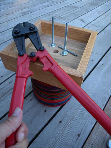 Antes de llegar tenemos que taladrar los agujeros en la base. Empecé con las tuercas roscadas de barra y bellota en los tres agujeros perforados a través de la pila. Una vez que tengas puede quitar las pinzas.