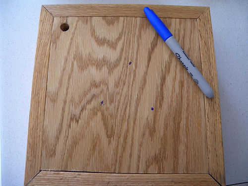 La marca donde los agujeros tienen que estar en la base. Sugiero con una broca de considerablemente más grande de este agujero. No ser sensible en el expediente y harán de roscar todos los registros en un poco más fácil.