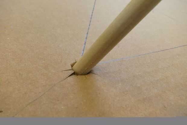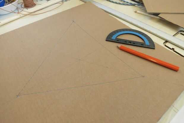 Hacer una plantilla de cartón simple ayudará a mantener las clavijas en su lugar mientras usted está en las manos están ocupadas atar el nudo en el paso 8. Use una regla y un transportador para medir un triángulo equilátero de 12". Empujar los agujeros en cada uno de los tres puntos para los tacos para más adelante.