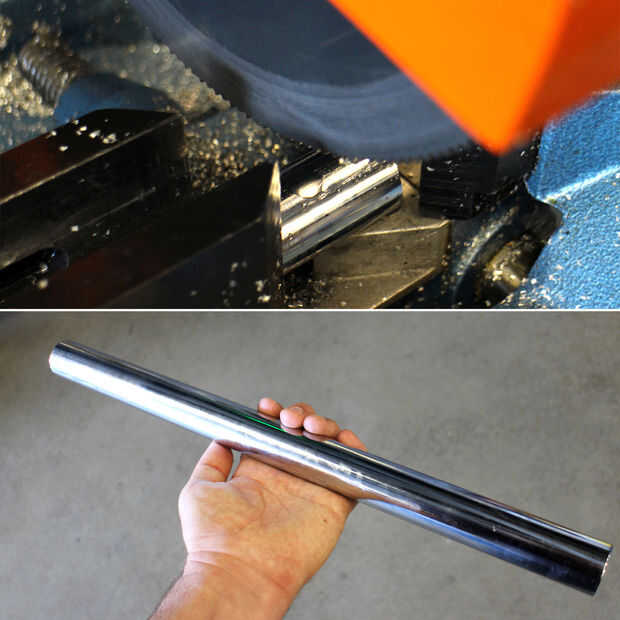Solía barras de armario cromo resistente como la estructura soporte las luces fluorescentes, sin que los bulbos fácilmente sería aplastados y quebrados. Conseguir la altura exacta de la estructura vertical puede ser complicado, especialmente con la curva de 90° son responsables de algunas de la altura entre puntos de conexión de la bombilla. Hice un suplente lámpara de referencia de un trozo de espiga que era la misma longitud que uno de los 4' bulbos utilizaba.