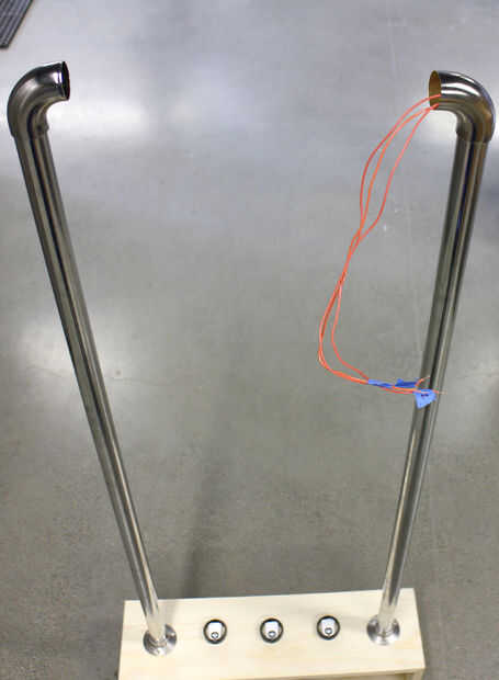 Con los conectores quitados, los cables fueron alimentados en el poste de cromo apertura y hacia arriba a través de la tubería y hacia fuera de la curva de 90°. Debe haber hilos capaz de longitud para completar la conexión eléctrica para las luces.