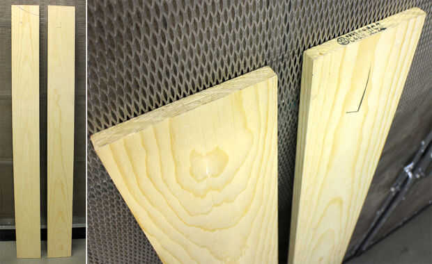 Estas piezas forman los extremos de la caja, delantero y tapa. Las piezas de la espalda y la parte inferior no será visibles y pueden ser juntas a tope. La otra tabla se utilizó para crear estas piezas.