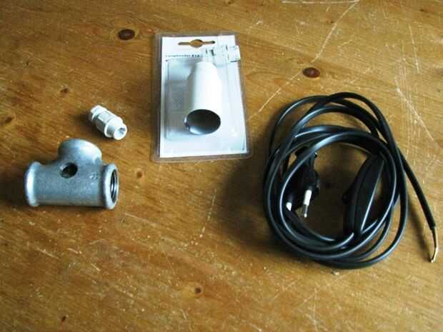 después se inspira en instructables otros como ver algunas lámparas de muy costosa tubería en ETSY... Decidí hacer mi propia.Tomé una lámpara de IKEA JANSJO y cortar la base y el vástago a través del tubo de rosca. Yo entonces calor envuelto mi traba