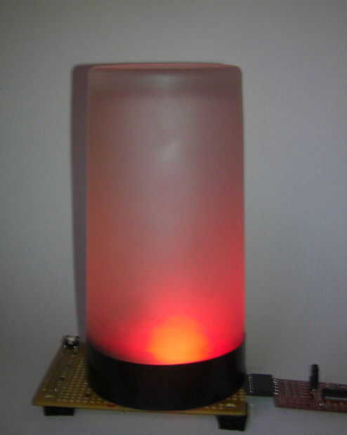 en este proyecto basado en Arduino, construimos una lámpara con varias pantallas de luz: color secuenciador, oscurecimiento de la luz, cazador de color, luz del fuego - todos los seleccionados por una barra táctil en el tablero de circuito.