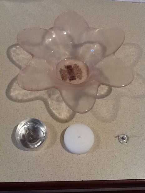 Obtener una pieza redonda de cera, una pequeña mecha con un titular, un Portavelas pequeño, un tazón de fuente/plato de cristal para todos, y un encendedor.