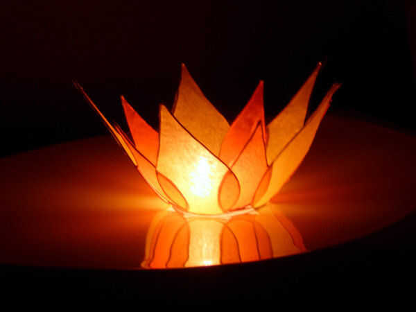 Pone sus 5 grandes en forma de piezas de alambre sobre el papel amarillo y sus 5 piezas pequeñas en el papel de seda naranja. Trace el borde exterior de cada pieza y cortar el papel en consecuencia.