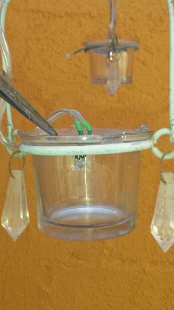 Yo uso un trozo de plastico para fijar los leds en los vasitos de vidrio. Se puede pintar el vidrio para darle otros tonos, pero el led no toque el plastico.
