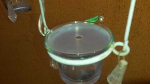 Utilice el pegamento para fijar el plástico en el vaso. Poner dentro de los leds.