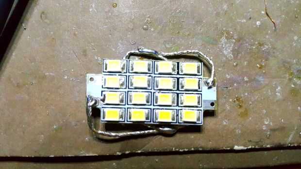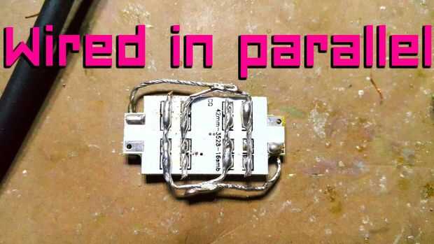 Una vez que las resistencias desagradables estaban desconectados, alambré todas 16 LED en paralelo. Con la micropuck corriente de salida 350mA, este arreglo será perfecto para el conductor y LEDs.
