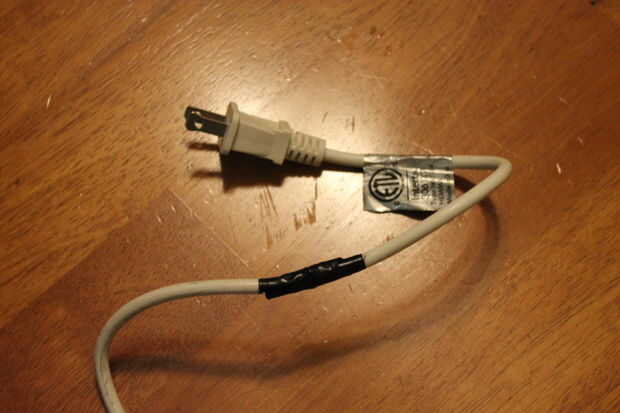 Por último perforó un agujero en el tubo cuadrado de 1/4 "x 1/4" para alimentar el alambre a través del brazo. Después de que el agujero fue perforado I cortar el enchufe del juego de luces y había alimentado el alambre a través del brazo y volver a colocarse el tapón con cinta aislante de algunos.