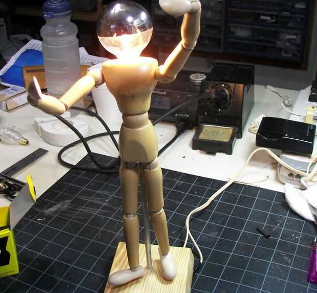 Una vez que ha hecho usted puede probar la lámpara y ver si funciona! Poner en un bulbo y conectarlo. Oh no, no hay luz! Probar el interruptor de encendido/apagado. Bueno, ahora se enciende! Equipo de Yay.