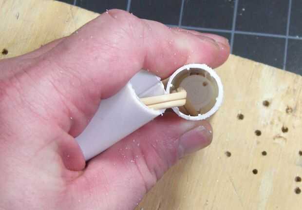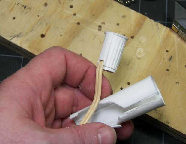 Ahora tienes el extremo del tubo plástico con el casquillo incrustado en ella y un cable que va hacia fuera. Busque en la sección a cortar y ver cómo la toma tiene algo de aire entre ésta y la pared del tubo - cortar verticalmente en esta sección para romper el conector del tubo. Había aserrado la mayoría de la manera y me hizo el último poco de esto con mi cuchillo para el corte final de control. Usando alicates y un destornillador, romper las piezas de tubo de plástico y sin el conector y el cable.