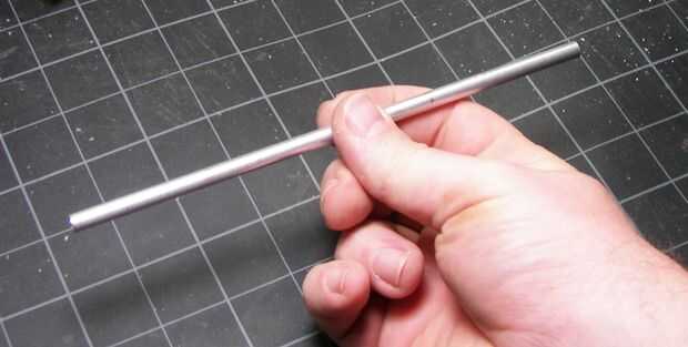 Ahora es el momento para cortar el tubo de aluminio a medida. Usted quiere algo que irá de sobre 2/3rds del camino hasta las caderas a una pulgada más allá de la parte inferior de los pies. Esto es aproximadamente 7.5", dar o tomar. Creo que número debería funcionar para la mayoría 12" maniquíes en el mercado. Otra vez, con su pequeña sierra corte el tubo de aluminio a medida. Una vez que lo ha hecho, utilizar los archivos de la aguja para alisar sobre las rebabas del corte, en particular uso la lima redonda para suavizar el interior borde. El cableado eléctrico se va desplazando sobre este borde y no quiere nada que podría cortar abierto.