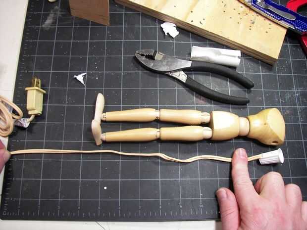 Una vez hecho esto, mide unos 13" de la parte superior de la toma y cortar el cordón. Esto le da algo que puede instalar en el maniquí y se suelde la espalda hasta los extremos al final del proceso.