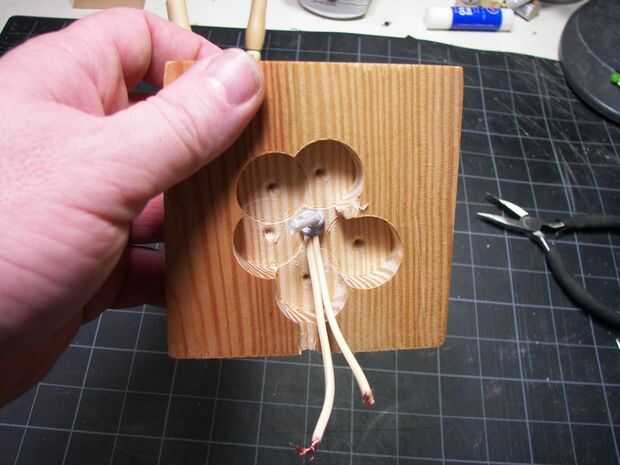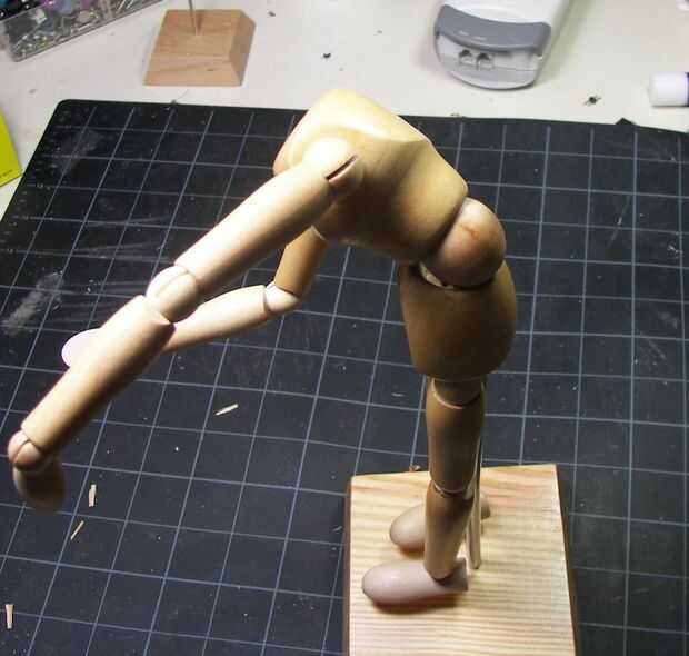 Empuje la arandela #6 hacia abajo el cordón hasta que golpea el fórceps. Justo detrás de eso, atar un nudo figura de 8 para mantener en su lugar. Ponga un pedazo de cinta sobre el cordón después del nudo y cortar el cable. Ahora puede colocar la base hacia abajo y representan al maniquí, debe llevar a cabo su pose vía la fricción