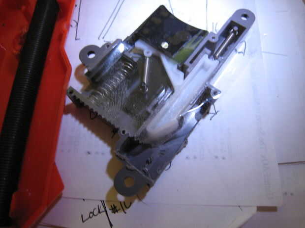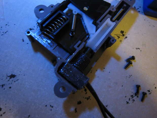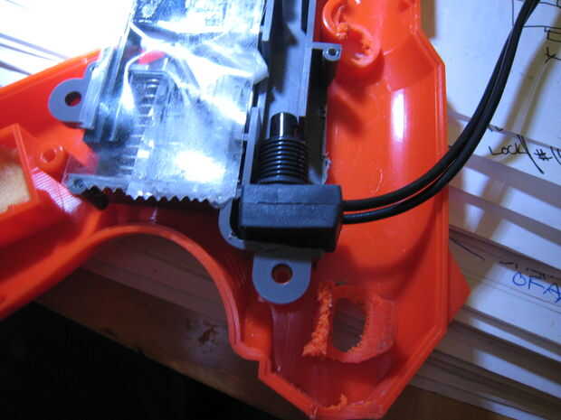 Quitar el blanco 'pistón' (no perder el muelle) y coloque el interruptor. Su un poco de grasa de partes del gris va a necesitar a recortarse. Dejé el agujero del tornillo para la estabilidad de montaje trasero.