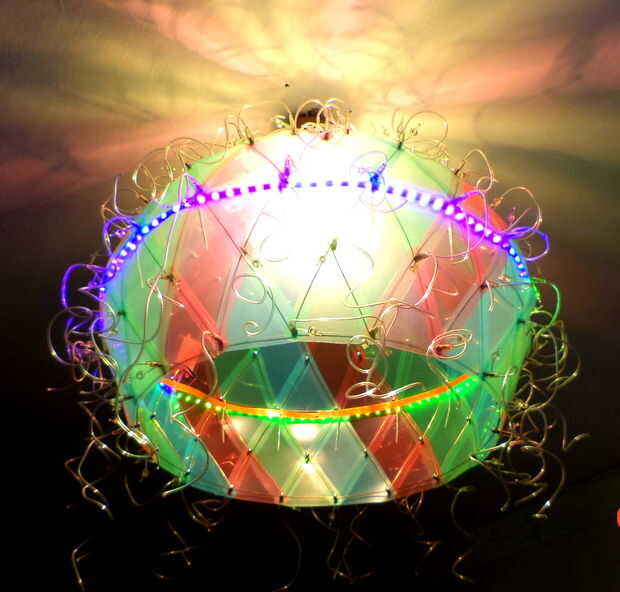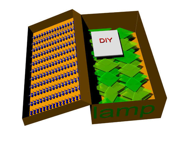 El diseño de la lámpara consiste en una lámina plana de policarbonato, luces LED y clips de plástico