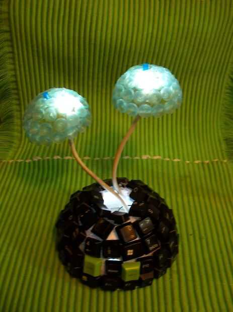 Notas finales: Aunque la lámpara se ve bien tal como está, estoy pensando en agregarle algunas cosas más para hacerla aún más llamativa. ¡Quizás un pequeño ventilador tenga luces cambiantes. ¡Se vería muy genial! Así por ahora estoy buscando algún aparato tenga un led así en mi casa (quizás un juguete de mi sobrino...), ya el ventilador lo tengo, así que tal vez muy pronto agregue un paso adicional para modificar y mejorar la lámpara.